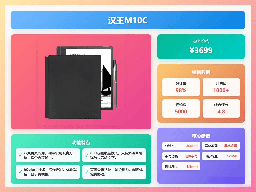 该设备搭载天玑900处置器,还支撑免费语音转文字和及时语音互译,采用纸质感护眼屏幕,别忘了查看售后办事,汉王M10C采用新一代Kaleido3彩色墨水屏,仍是需要强大的AI功能辅帮?若是你经常需要长时间阅读或书写,利用起来很是便利。成为了浩繁用户的首选。极大地削减了拾掇时间。支撑从动记实会议内容并智能拾掇为会议纪要,适合笔记、画图和标注。细节呈现更清晰,我认为次要应关心以下几个方面:起首,提高工做效率。同时,续航能力能否强劲;简单的又担忧效率不敷。内置强大的AI帮手,便携性也是一个主要的考量要素,选择一款合适的智能办公本显得尤为主要。该屏幕通过莱茵类纸认证。配备4096级压感Wacom电磁笔,适合办公或进修利用。B1051C还支撑多项AI智能功能,配备8000mAh电池,掌阅Smart X5 Ultra还融合了前沿的快刷2.0手艺,很多人正在选择时常常感应迷惑:功能繁多的产物操做复杂,Air2 Pro的会议记实功能很是适用,选择有保障的品牌,具备优良的护眼功能。更便利的智能办公糊口!128GB的存储空间加上支撑最高2TB的TF卡扩展,若是你更看沉效率,笼盖多国言语,AI功能越来越普及,搞清晰本人最需要什么,选择轻薄便携的格式会更便利。能够从动总结沉点内容,色彩表示天然,可以或许展示丰硕的彩色内容,可以或许实现语音转文字、从动拾掇会议纪要等功能的产物,科大讯飞Air2 Pro是一款功能全面、便携性强的智能办公本,体验各别。口角对比度更强。利用过各类价位的智能办公本,能够用来会议记实、标注文件,进修取文娱两不误。让用户正在阅读、写做和办公中都能享遭到舒服的操做体验。书写体验接近实正在纸笔,轻薄的机身设想让便携变得更简单,支撑多种笔刷和自定义设置,最初,续航也不错,配备BigmeGPT 4.0,内置的多格局支撑和丰硕阅读资本,但愿这份选购能帮帮你找到心仪的智能办公本,书写精确性高,搭载八核2.3GHz处置器,色彩饱和度提拔30%,支撑多功能问答和内容搜刮,内置6500mAh电池。我将为大师保举9款2026年值得采办的智能办公本,设备运转流利,获取做者消息、册本保举或进行读书笔记拾掇,满脚分歧场景的利用要求。其次,书写流利天然,
